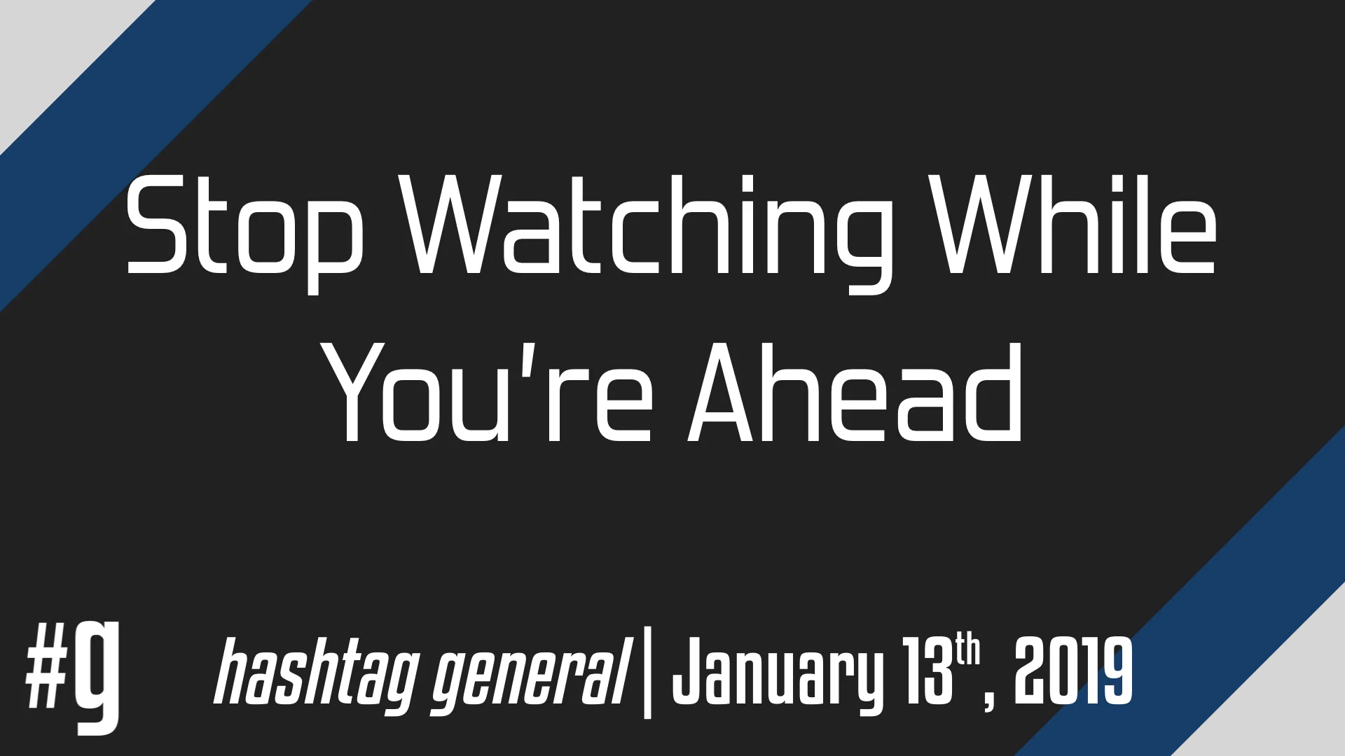 Stop Watching While You're Ahead | January 13, 2019